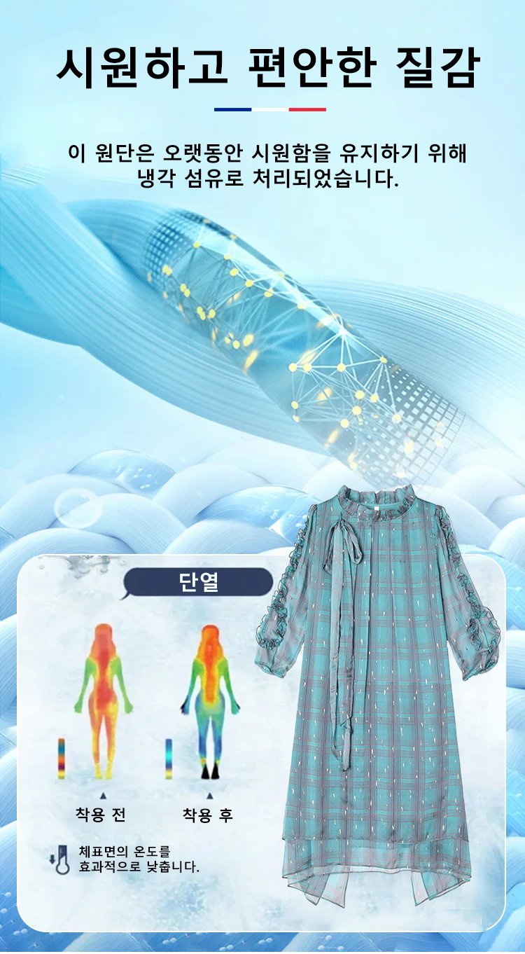 고급스러운 프렌치 스타일 원피스, 100% 천연 실크 소재로 가볍고 통기성이 뛰어나 여름철 답답함을 날려줍니다.